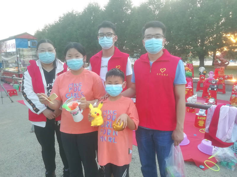 在大学城园博园游乐场,青年志愿者们陪伴姐弟俩开心地玩套圈、砸沙包等游戏,并带领孩子第一次品尝德克士。看到孩子开心的表情,青年志愿者们感到非常欣慰。