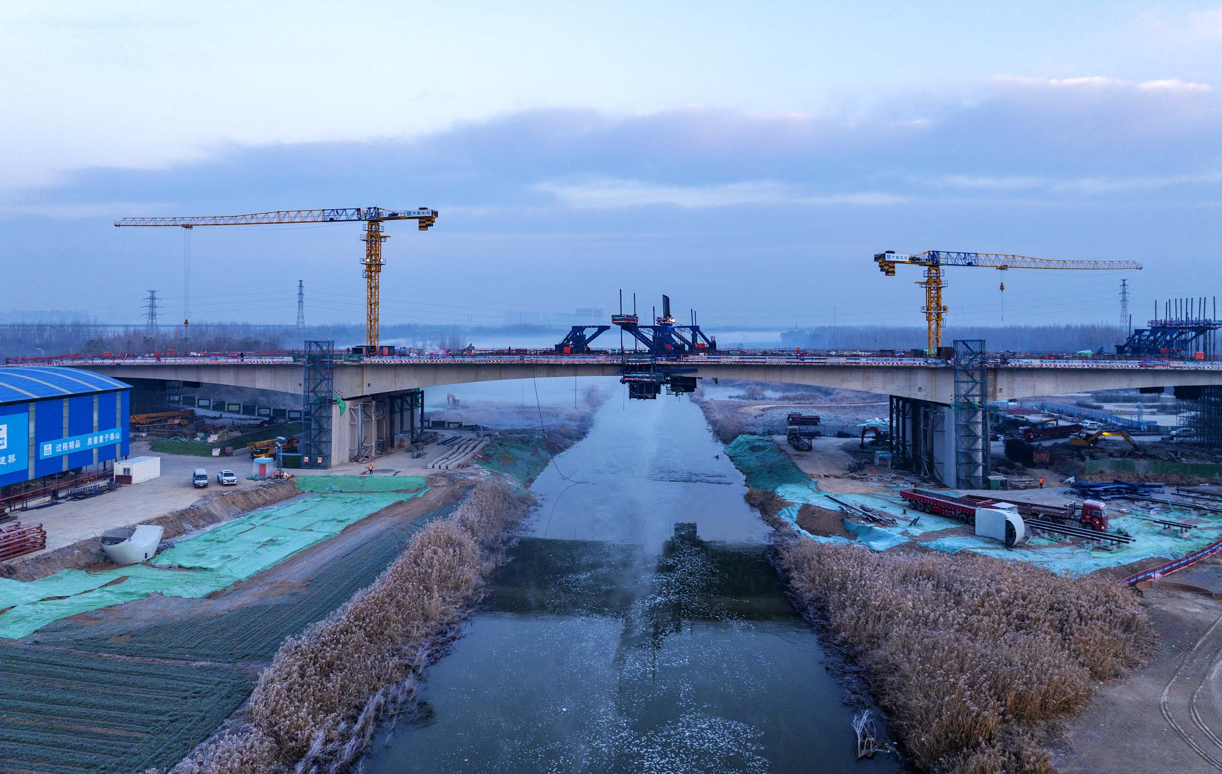 近日,德州筑城公司供货的德州大学路跨减河桥主桥顺利合龙。该桥梁全长980米,最大单跨长度达到100米。筑城公司承揽并圆满完成了该工程中2万余方高标号C50和C55箱梁混凝土的供应任务。
